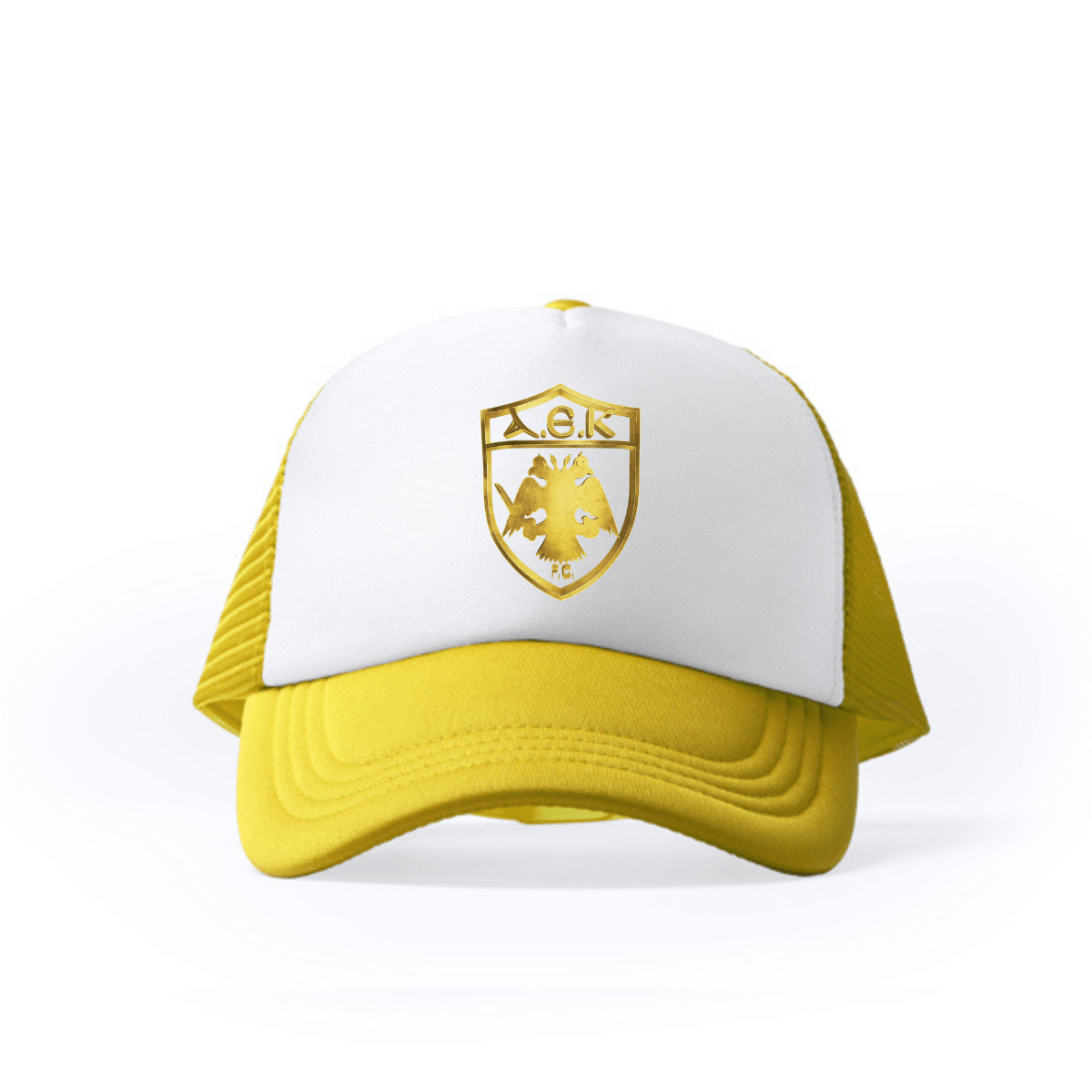 Καπέλο AEK Χρυσό, σχεδιασμένο για κάθε φίλαθλο που θέλει να δείξει την αγάπη του για την ομάδα με στυλ και άνεση.