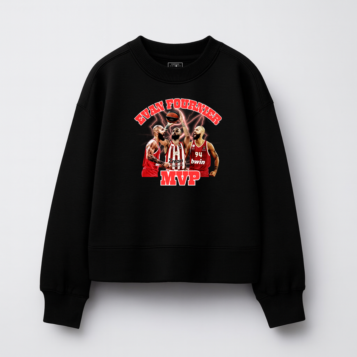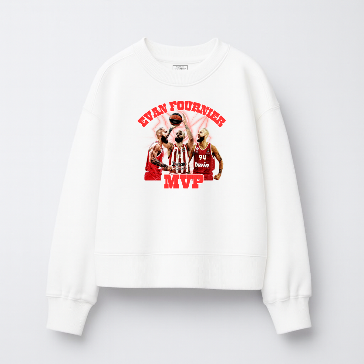 Το Παιδικό Φούτερ Evan Fournier MVP χωρίς κουκούλα είναι η απόλυτη επιλογή για τους μικρούς φίλους του μπάσκετ και του Ολυμπιακού!