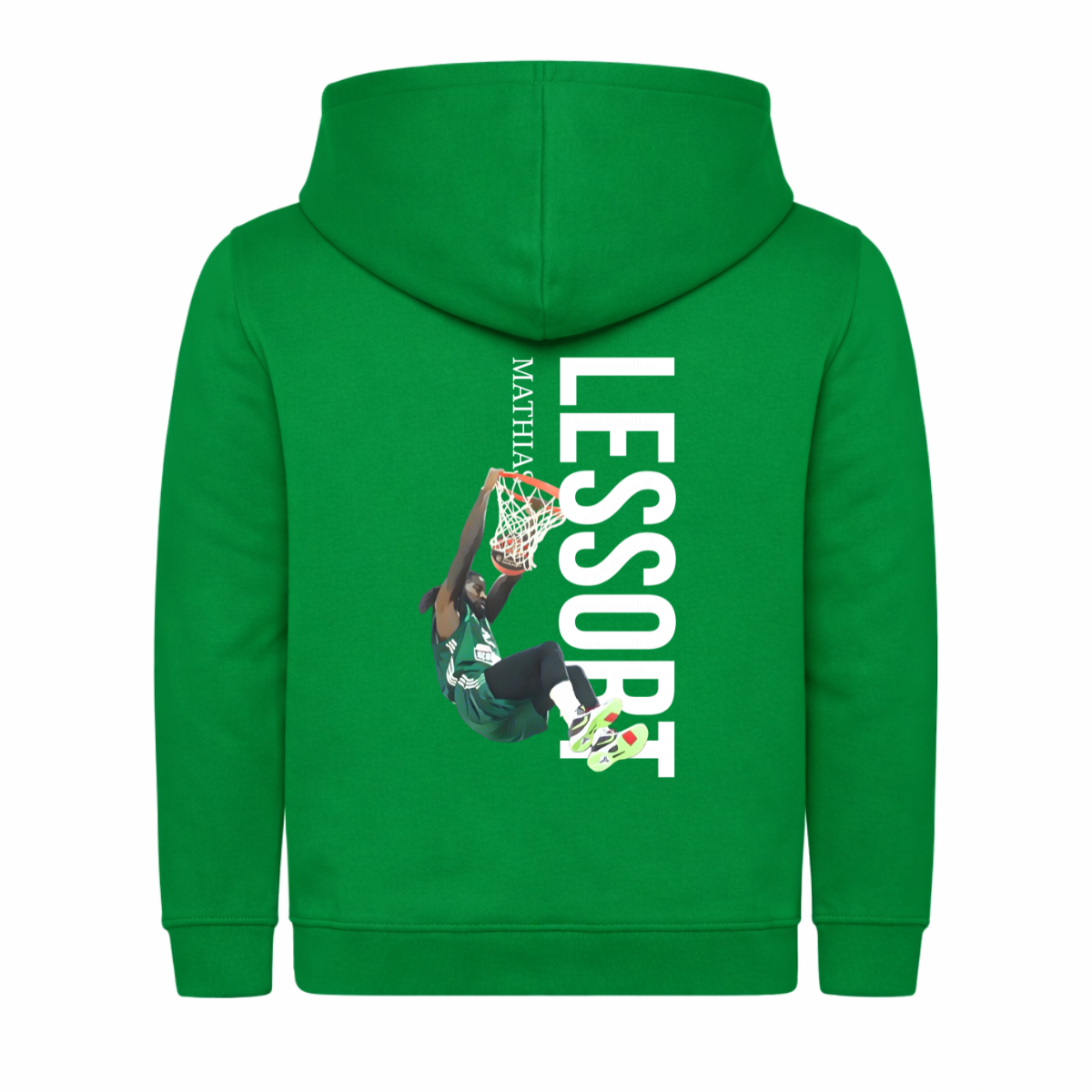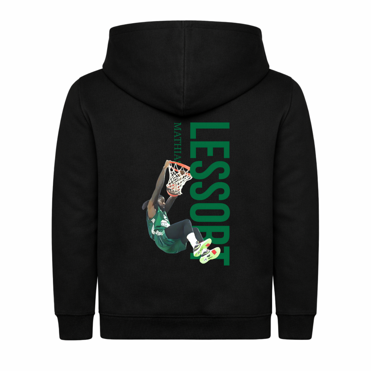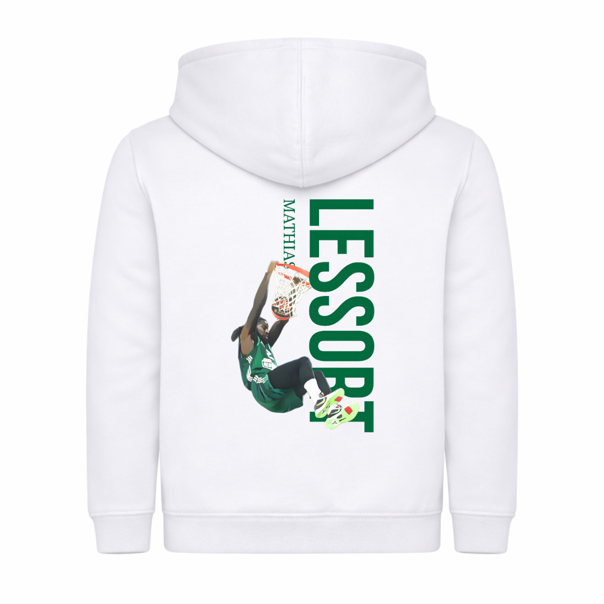 Το Παιδικό Φούτερ Mathias Lessort Vertical είναι η απόλυτη επιλογή για μικρούς φίλους του μπάσκετ και του Παναθηναϊκού! Με δυναμικό vertical σχέδιο στην πλάτη που απεικονίζει τον Mathias Lessort σε εντυπωσιακή φάση καρφώματος, το φούτερ ξεχωρίζει και αποπνέει μπασκετική ενέργεια και πάθος.