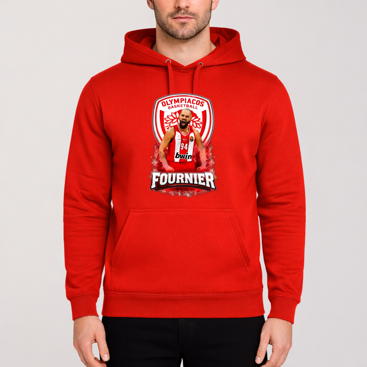 Ανάδειξε το πάθος σου για τον Ολυμπιακό με το Φούτερ Ολυμπιακός Fournier. Το εντυπωσιακό design με τον Fournier σε δυναμική μπασκετική στιγμή και το σήμα της ομάδας δημιουργεί ένα ισχυρό οπαδικό statement.