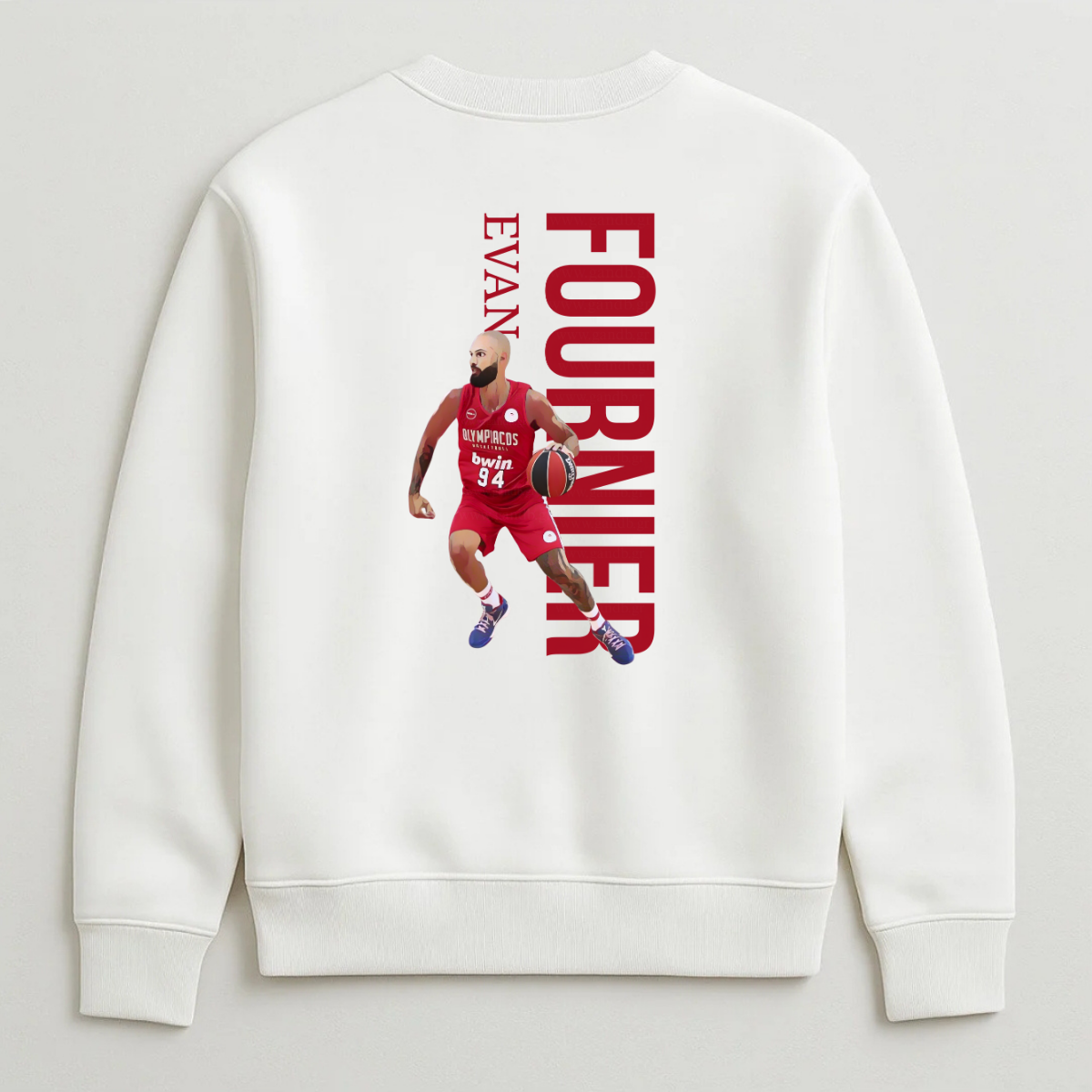 Το Φούτερ Χωρίς Κουκούλα Evan Fournier Vertical αποτυπώνει τη δυναμική παρουσία και το αγωνιστικό πάθος ενός κορυφαίου παίκτη του Ολυμπιακού.
