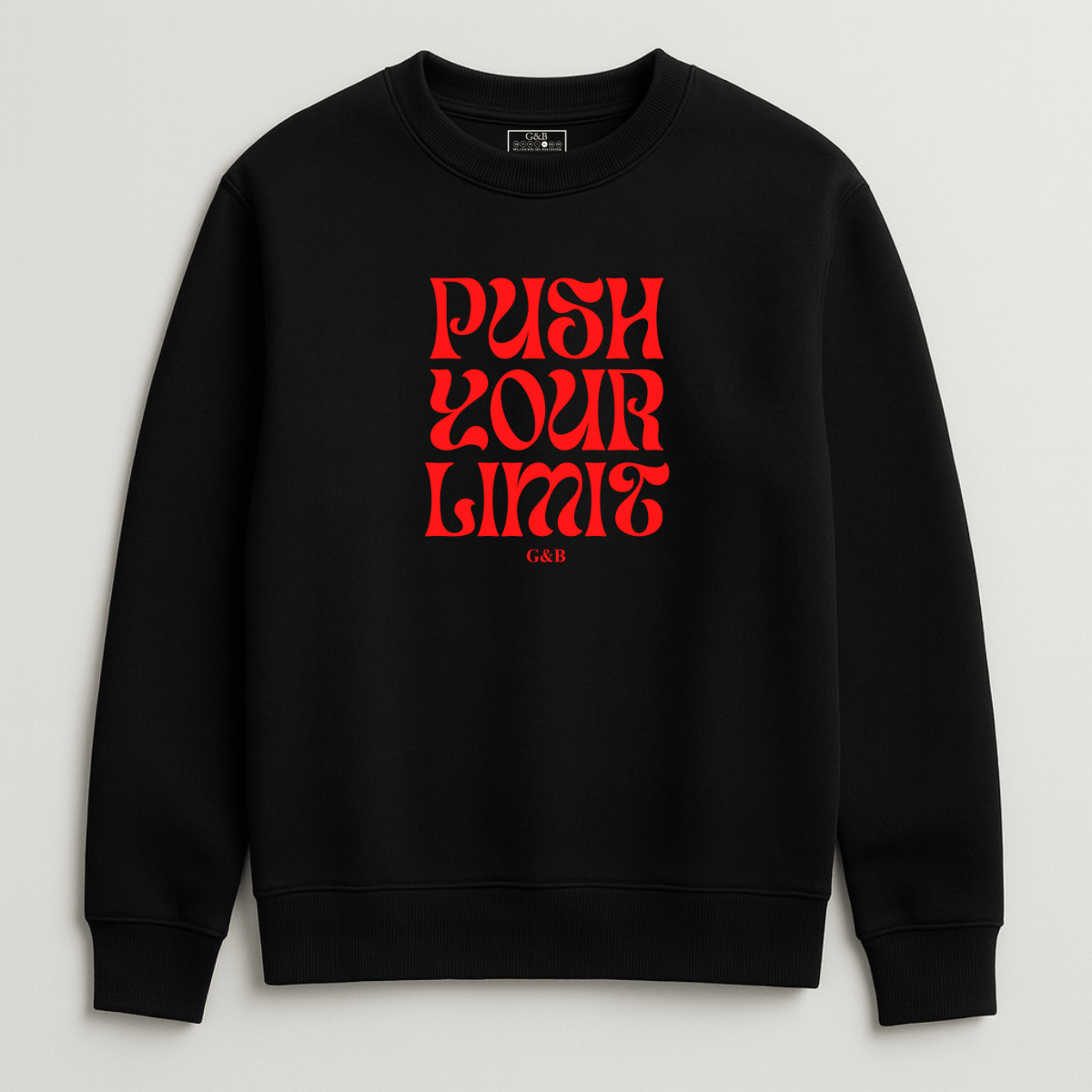 Ανέβασε ρυθμό και δήλωσε τη νοοτροπία σου με το Unisex Φούτερ Χωρίς Κουκούλα “Push Your Limit” της G&B.