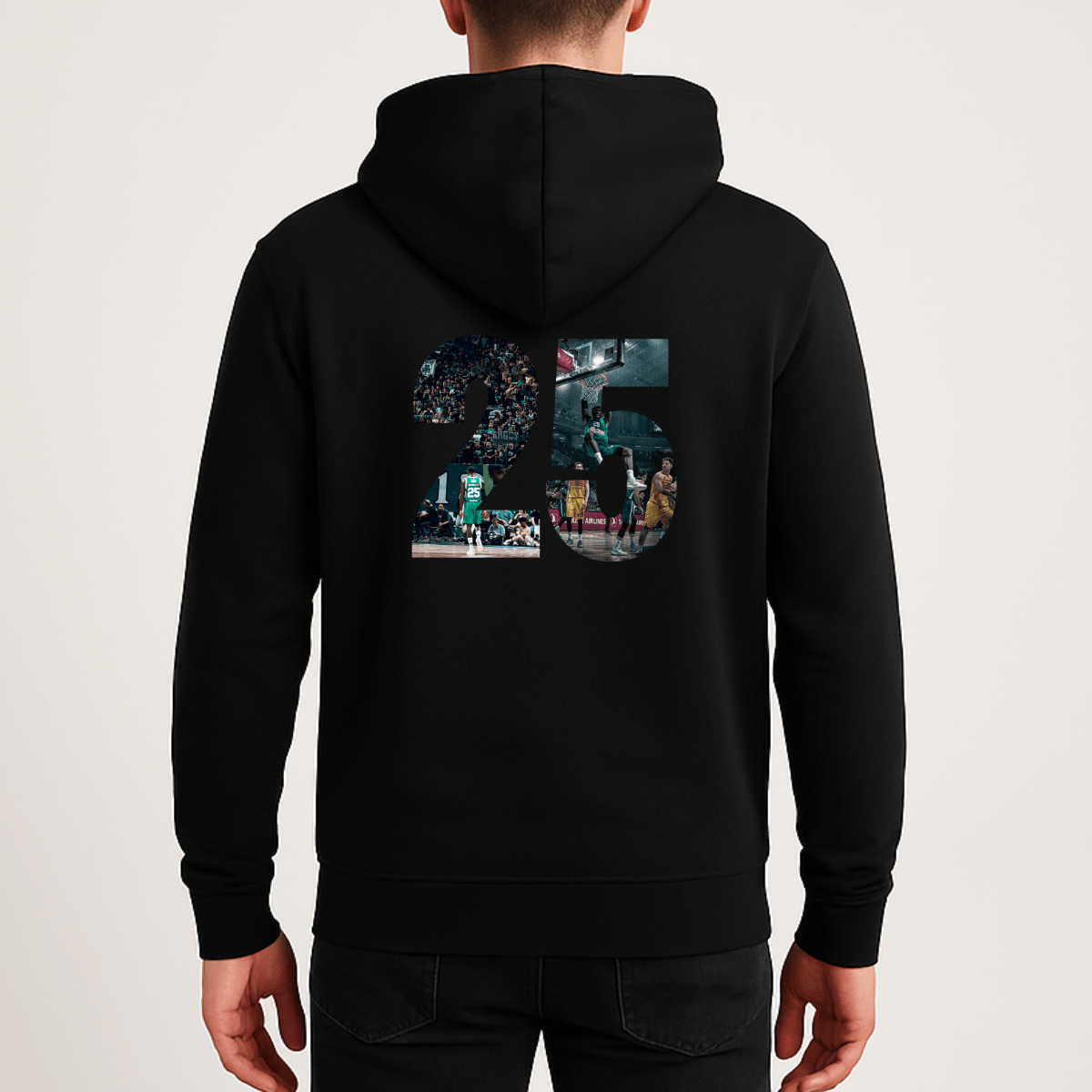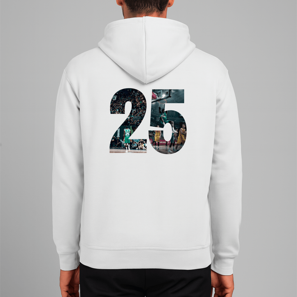Αυτό το δυναμικό hoodie αποτυπώνει την ενέργεια και το στυλ του κορυφαίου παίκτη, με εντυπωσιακό σχέδιο μπροστά και τον αριθμό 25 στο πίσω μέρος.