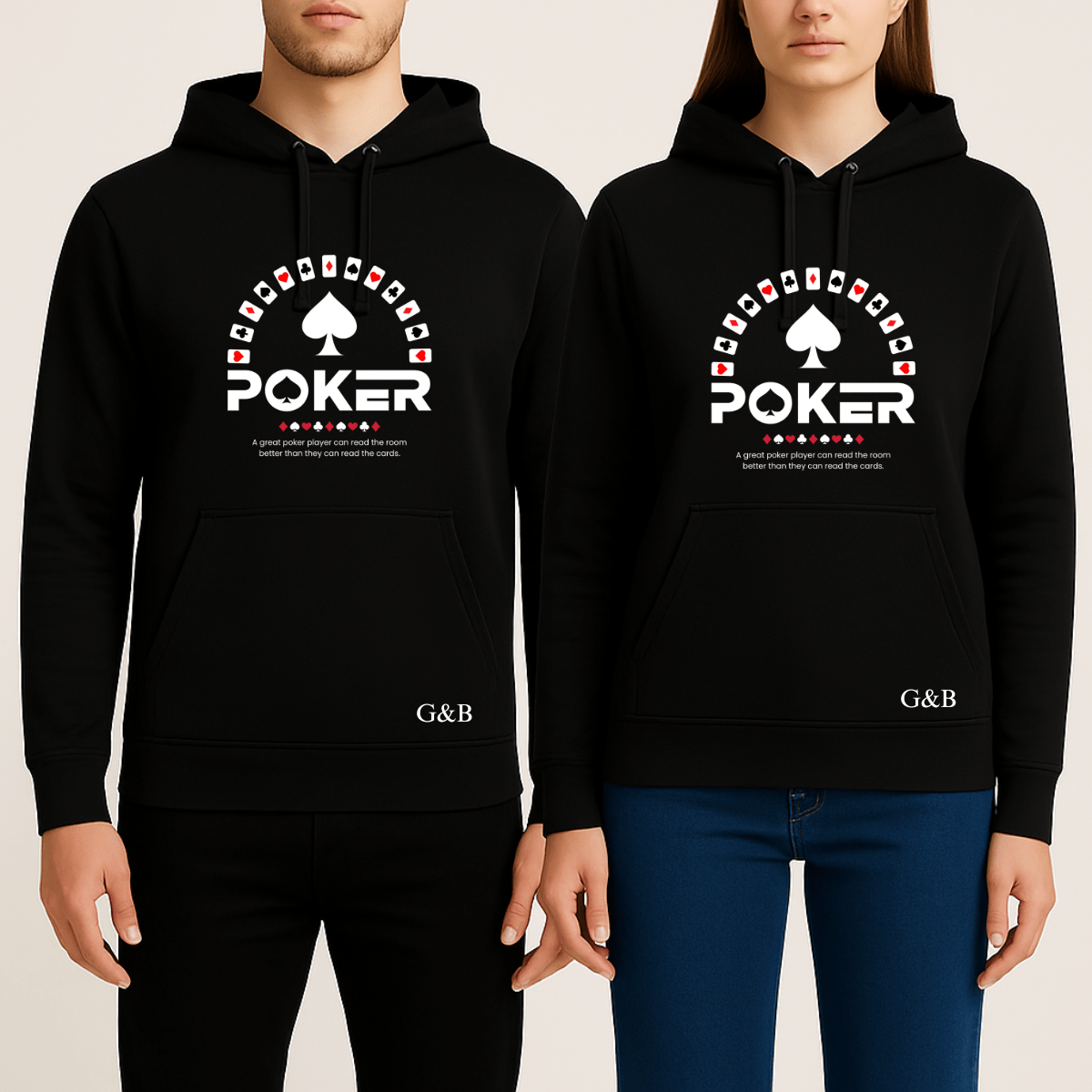 Δείξε το στυλ σου με το Unisex Φούτερ Poker από τη G&B! Ξεχώρισε με τη μοναδική στάμπα πόκερ που συνδυάζει design και attitude.