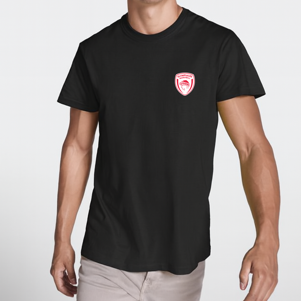 Το εμβληματικό λογότυπο του Ολυμπιακού στο μπροστινό μέρος ολοκληρώνει το look με περηφάνια και χαρακτήρα.