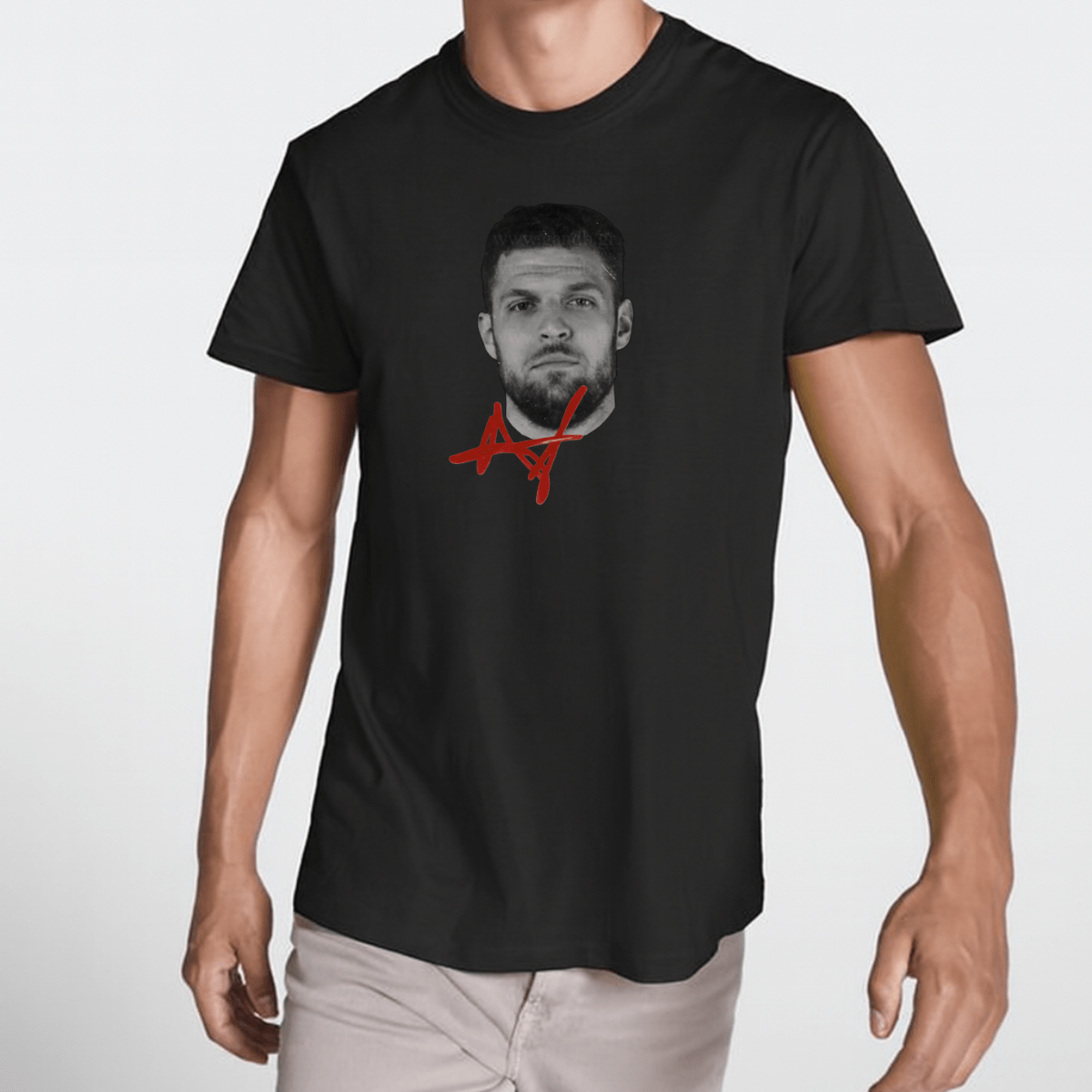 Το μπροστινό μέρος του T-shirt παρουσιάζει το πορτρέτο του παίκτη με την υπογραφή του, ενώ στο πίσω μέρος δεσπόζει ο αριθμός 14.